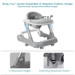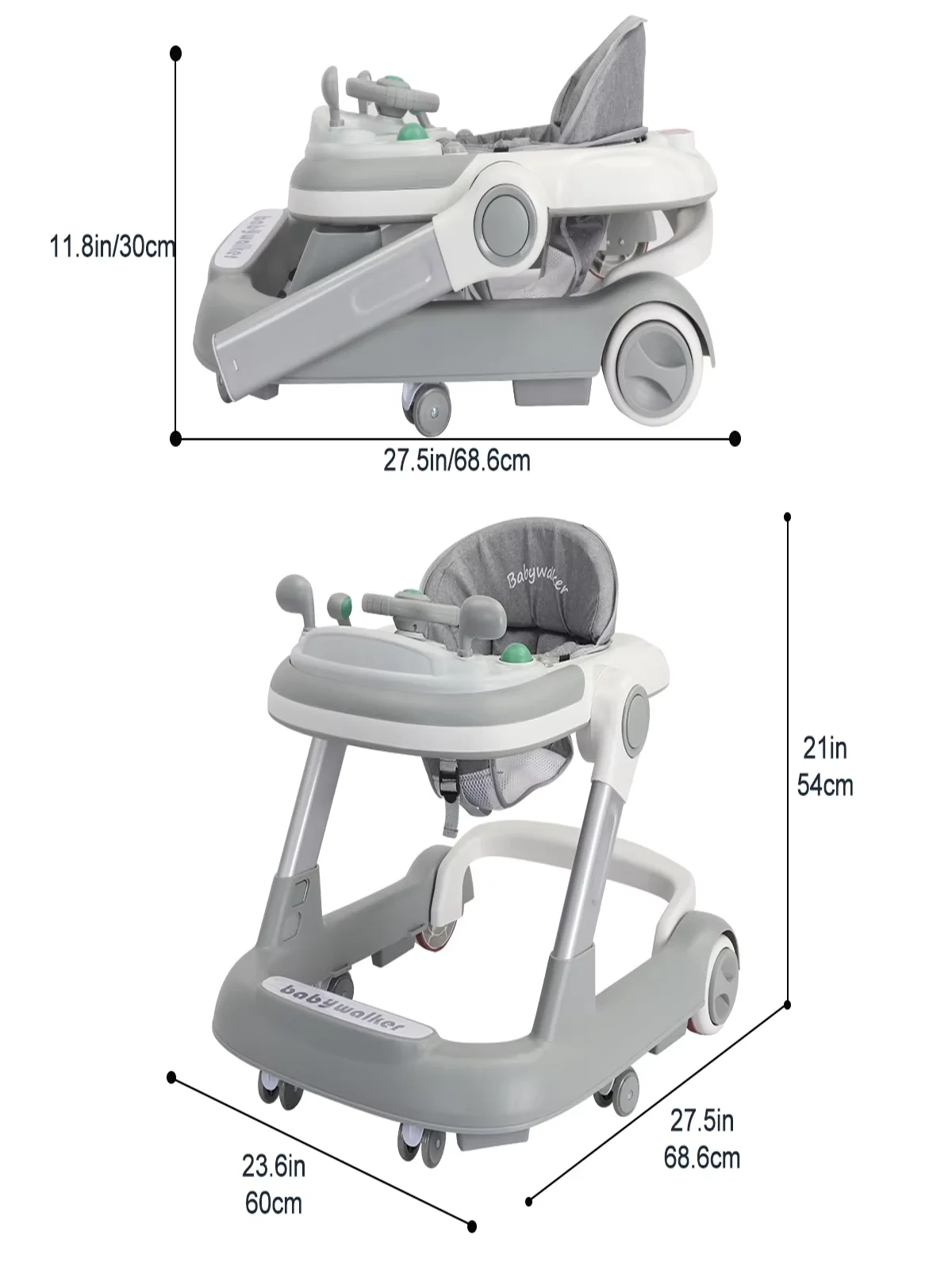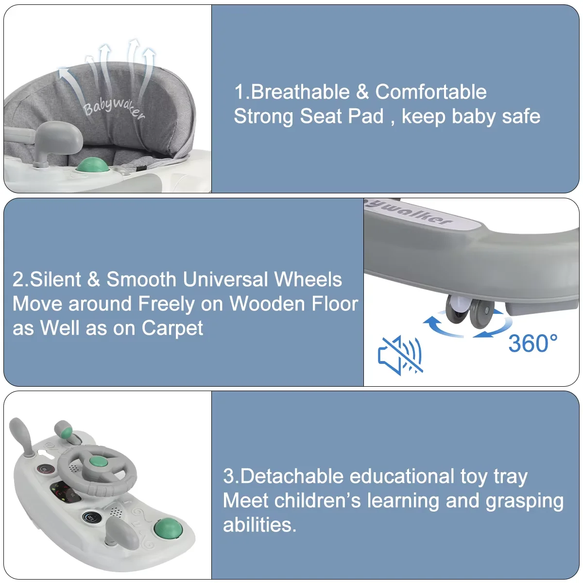 Safe Design: The speed of the baby walker can be adjusted in two modes: normal mode and low-speed mode. Additionally, it is equipped with 360° rotatable casters, allowing the baby to move freely and safely.