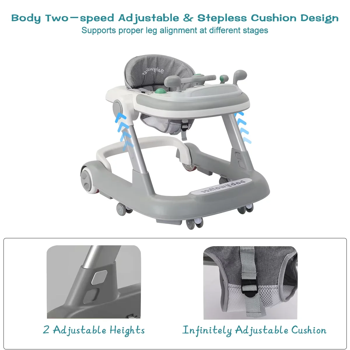 2-Level Height Adjustment: The height of the UBRAVOO baby walker can be adjusted according to the seat. It meets the growth needs of children of different ages and heights, and effectively prevents bow legs, helping parents take care of their babies.