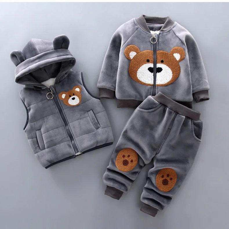 3PCS Winter Toddler Baby Boys Girls Clothes Baby Sweaters Coat + Pants + Hooded Vest Outfit Set Infant Clothing Suit