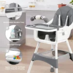 • Convertible Design for Growing Babies: This high chair grows with your little one, supporting independent eating from 6 months and converting into a toddler chair for playtime as they reach 3 years. It’s the perfect companion to nurture healthy eating habits and adapt to their changing needs.