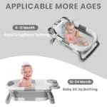 Smart Bath Features: Includes a built-in water thermometer to ensure the perfect temperature for baby’s comfort, giving parents peace of mind. The insulated bottom reduces heat loss, while a secure drain plug makes emptying quick and leak-free.